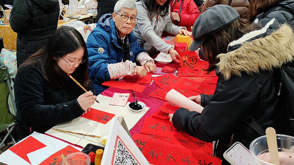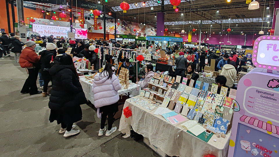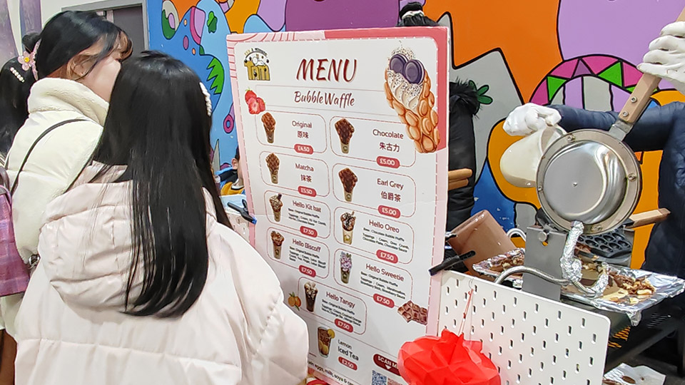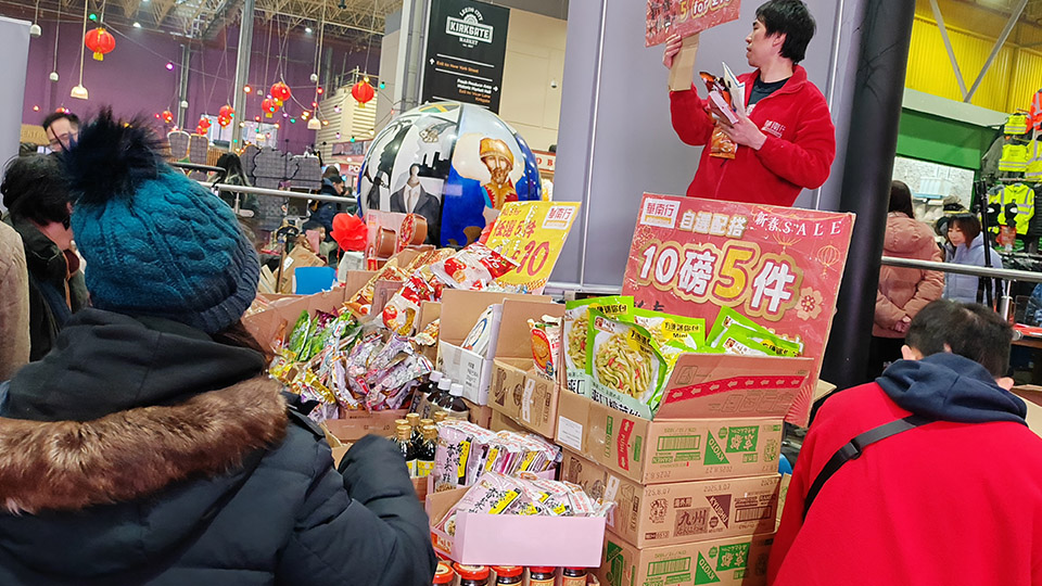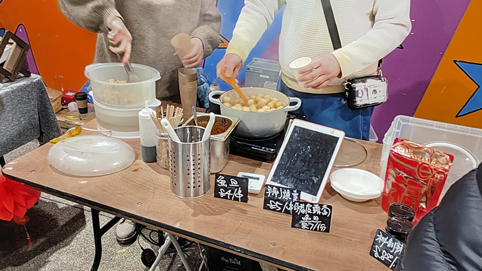 今次有成61個攤檔環繞住美食廣場,而且貨品種類繁多,除了各式賀年食品同DIY過年裝飾品,仲有好多港式美食,好似雞蛋仔、魚旦、奶茶等等。現場仲播放住廣東話賀年歌,有財神派利是,仲有攤檔現場寫揮春,充滿住過年氣氛!聽唔少列斯港人講,今年規模比往年大,人流亦更多,不如等我哋一齊回顧吓今次盛況!
