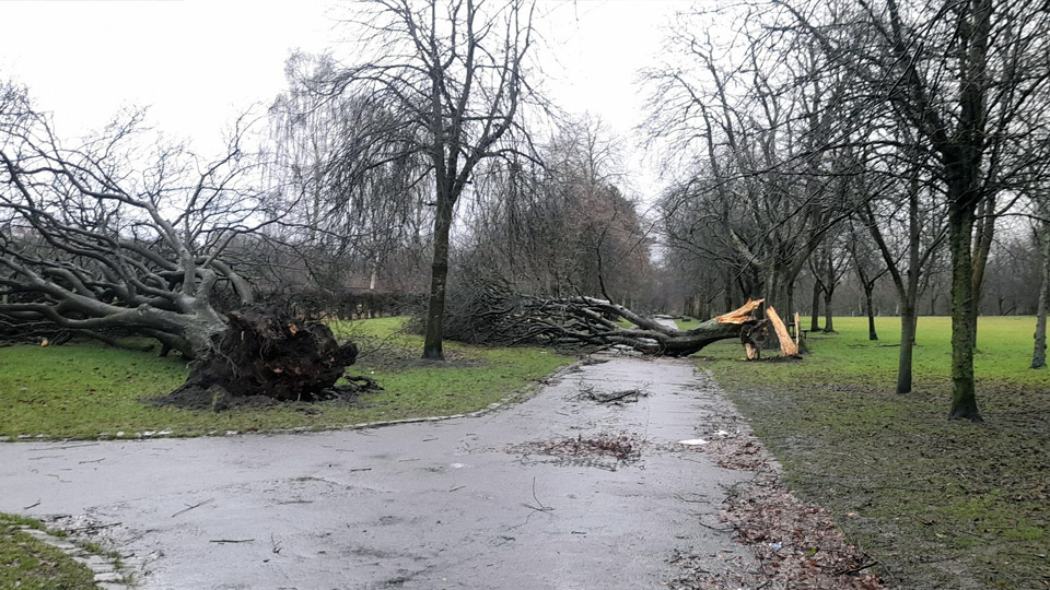 據BBC報道,一名男子在車中被倒下的大樹壓死,近百萬戶家庭停電。由於風暴損壞了建築物並吹倒了樹木,北愛爾蘭的所有學校都停課。
