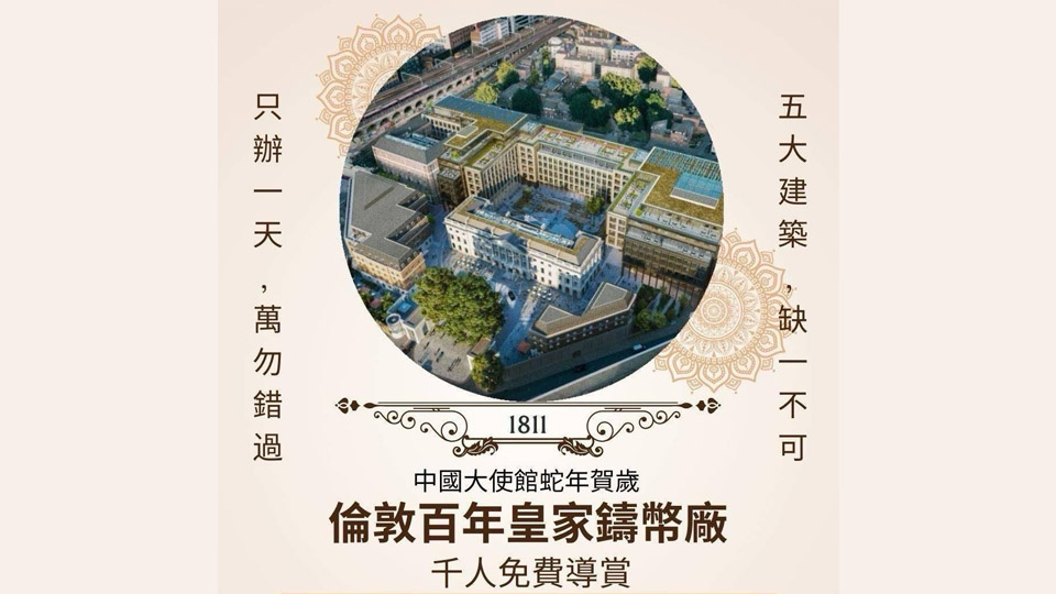 2018年,中國購入倫敦前皇家鑄幣廠原址,計劃將其改建為約70萬平方呎的「超級大使館」。但多年來的申請,都被當地市議會因安全理由而拒絕。然而自工黨政府上場,並向中國政府多番示好後,這計劃似有死灰復燃之勢,預計中國外長王毅下月訪英國,便會正式宣布批准計劃。故超過三十個港人團體,將於本周六(8日)發起舉行「皇家鑄幣廠導賞團」。