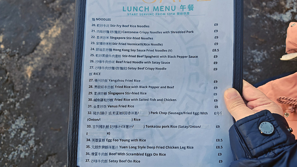 幫襯完後,終於明白點解咁多人幫襯:首先價錢唔算貴,例如乾炒牛河都只係£9,另外就係出品有水準,雖然鋪面掛咗個大大嘅招牌「九流師傅」,但我覺得如果唔係個厨房大佬有料,肯定唔敢咁玩。最後就係,成間鋪掛滿啲Mirror嘅宣傳品,要我對住Anson Lo食飯,係囉呢啲就係港味囉。