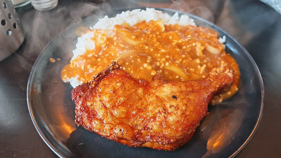 雖然朋友推介雞扒飯,但我見到餐牌上竟然有「元朗炸脾飯洋蔥汁」,咁梗係要試,結論係呢隻炸脾係用港式炸雞脾嘅方法去整,而洋蔥汁亦做得出我哋食慣嗰種螢光蕃茄汁嘅味道,所以我好快就成碟掃晒。