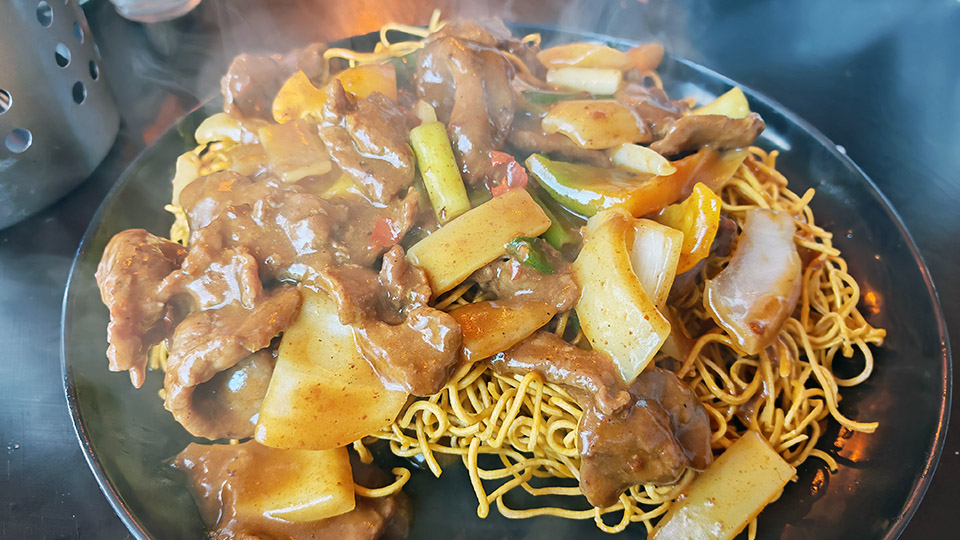 另外,去到茶餐廳梗係要食沙嗲牛肉,所以點咗沙嗲牛肉炒麵(炸麵底)。筆者覺得個麵底係夠脆,但應該食返肉絲炒麵味道會比較夾。