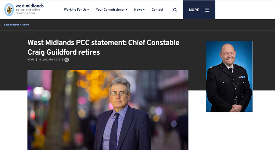 西米德蘭警察(West Midlands Police)局長Craig Guildford因馬卡比特拉維夫(Maccabi Tel Aviv)球迷禁令爭議,今日宣布即時退休。此決定在警方督察局嚴厲報告及內政大臣馬曼婷(Shabana Mahmood)公開表示對其失去信心後數日內作出,標誌事件進一步升級。
