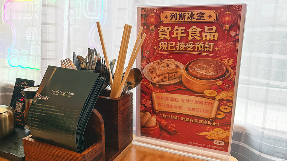 相信好多Morley嘅街坊都曾經幫襯過之前喺Morley Market入面嘅Foods Stop。當時佢哋主要賣港式小食,例如魚旦燒賣菠蘿包之類。大半年前,佢哋搬咗去Wortley,除咗多咗個中文名叫列斯冰室外,菜單亦都多咗好多飽肚嘅食物,例如炒飯同撈麵等等。另外,佢哋亦會按時令推出唔同嘅限時精選,就好似近來臨近農曆新年,佢哋會有年糕同蘿蔔糕預訂等等。