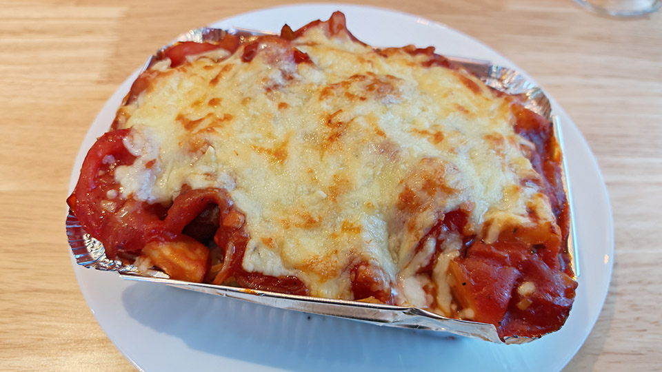 雖然新鋪係喺一個住宅區嘅Corner Shop,但好處係門口可以停到車。新鋪唔大,大約只有十個位,但裝修得幾骨子。睇餐牌,除咗一向都有嘅魚肉燒賣、咖哩三寶同沙嗲牛肉之外,仲加咗好多熱食,例如臘腸炒飯、蔥油雞扒飯等等。另外仲有今次要介紹嘅焗豬扒飯。試過之後,我覺得呢個焗豬扒飯真係俾足心機去整,因為依家即使喺香港食,好多快餐店因為時間成本關係,飯底已經唔會係炒飯,而呢度嘅焗豬扒飯,除咗用炒飯底之外,茄汁同芝士份量亦都好夠,一啖食落去都幾滿足。