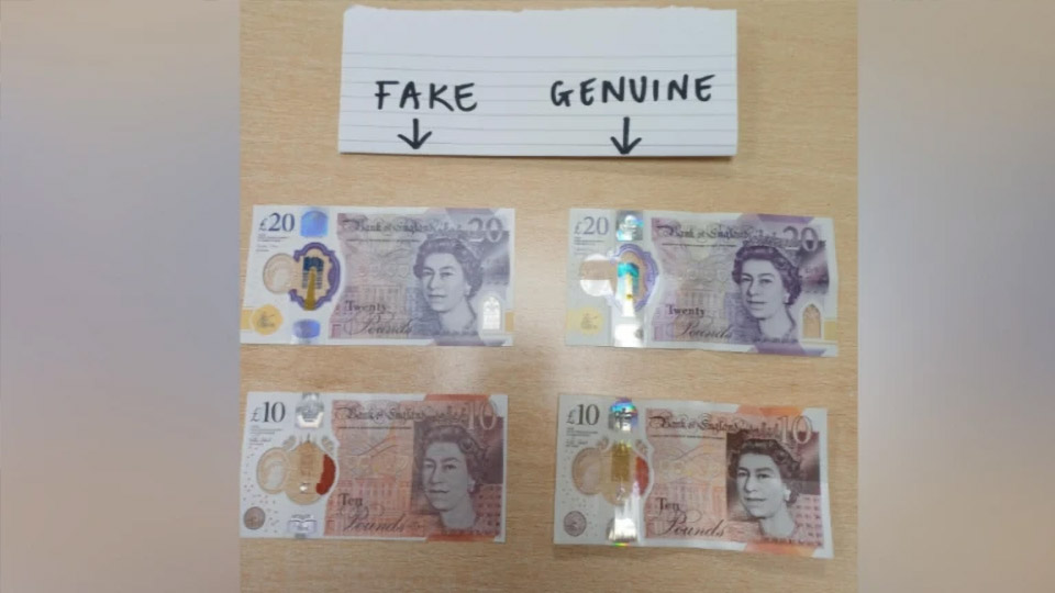 諾定咸郡(Nottinghamshire)警方近日接獲三宗獨立報告,指有偽鈔用於支付外賣及在社交媒體購物,主要涉及假冒的20英鎊及10英鎊紙幣。這些偽鈔主要在紐瓦克(Newark)地區出現。警方於上週日在社交媒體發佈警示,並附上真鈔與偽鈔的比較照片,以及英格蘭銀行的辨識建議。