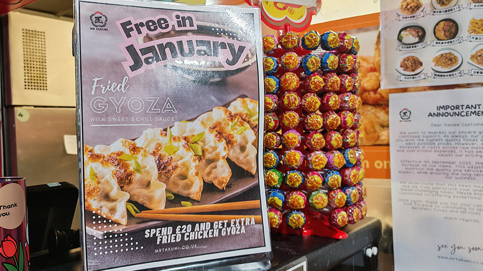 我哋幫襯咗大約四十幾鎊,一家四口已經飽到食唔晒,除咗份量大之外,佢哋仲有買滿幾多錢之後就送多一個餸嘅優惠,近排有日式餃子同椒鹽雞翼等,然有仲有外賣店必備嘅一大包炸蝦片,真係飯後小食都有埋。