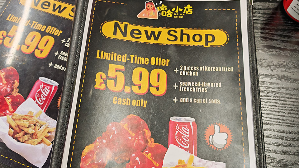 列斯Kirkgate Market近來開咗好多香港人食店,但其實在另一個港人集中地Morley,亦有新嘅香港人店進場。喺Morley Market內,除咗有之前介紹過嘅13 Noodles外,最新登場嘅係主要賣韓式食品嘅「Ha Ha小店」。早前筆者去試過佢哋嘅招牌韓式炸雞,不單抵食夾大件,仲真係幾好食,難怪連喺Wakefield嘅朋友都個個禮拜走去幫襯。