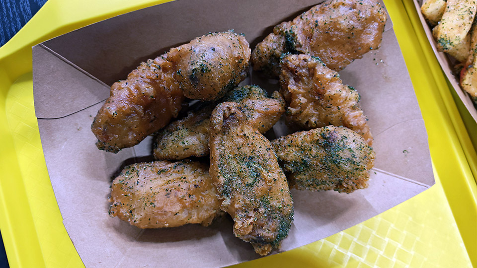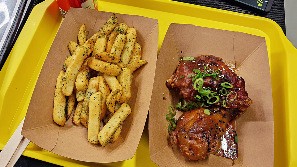 我哋兩個人,食咗一個meal deal同伴飯,再叫多半打雞翼,但真係食唔晒。順帶一提係佢哋啲薯條同樣炸得好鬆脆,加埋海苔粉真係忍唔住食晒。
